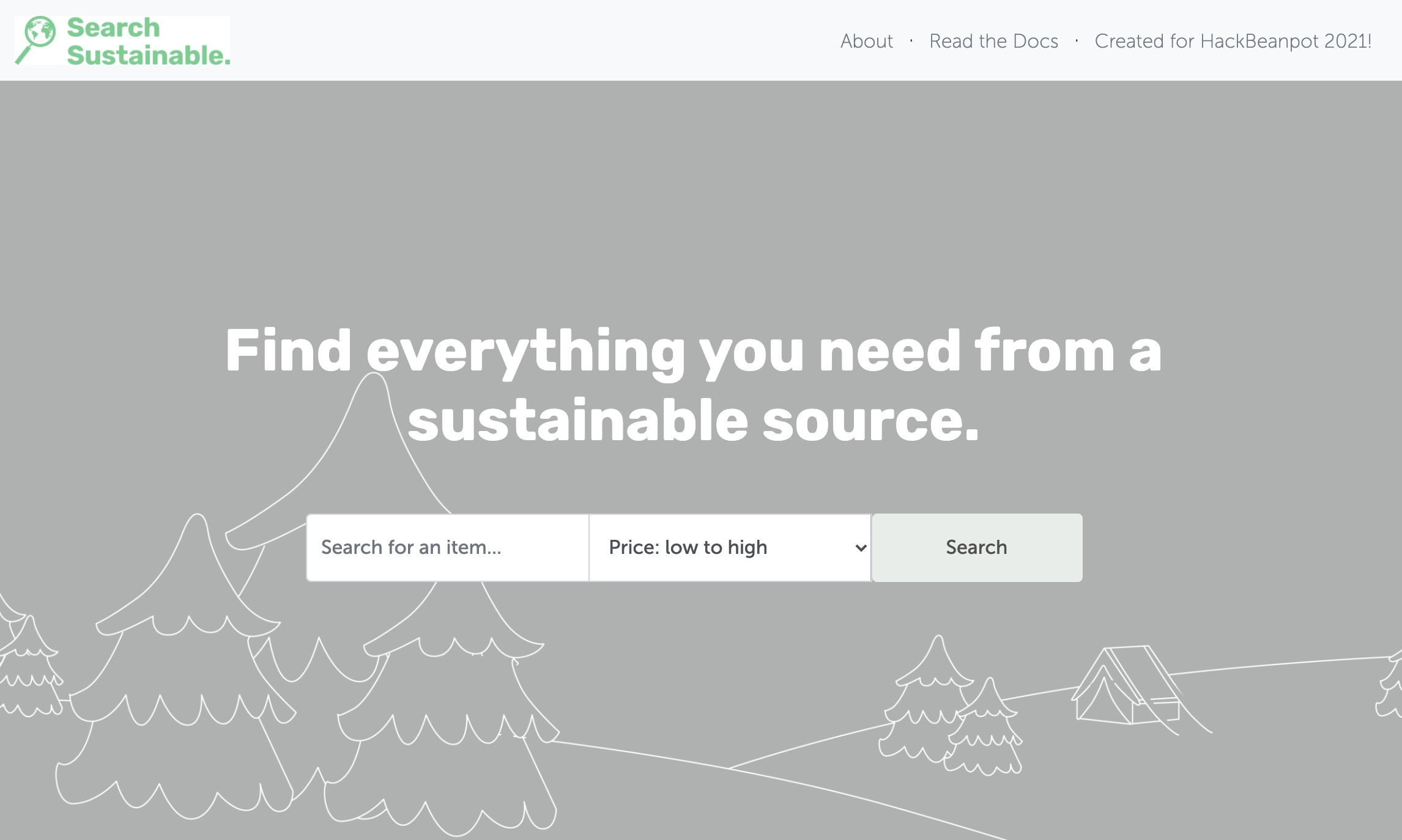 Search Sustainable is a web application that helps users find everyday products from sustainable sources. I worked with three developers to create Search Sustainable during a weekend-long Hackathon. The goal of this project is to create a helpful tool that directs consumers to better purchasing options. My role as the designer and front end developer was to develop the UX design strategy, then implement it using HTML and CSS.