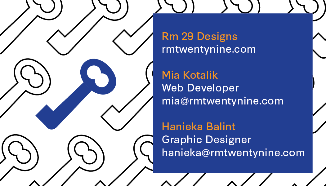 In 2019 my college roommate and I started a company called Rm 29 Designs. Named after the room where we met our freshman year, Rm 29 is a design studio that specializes in covering small business's graphic design and web development needs. I created all materials for Rm 29's brand, including our logo, style guide, business cards, and website illustrations. Much of the work displayed on this portfolio was done for Rm 29 clients.